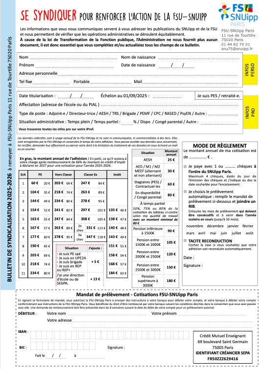 Pour fonctionner, pour agir et faire entendre les revendications des personnels, remplir les missions de représentation du personnel, construire une vraie transformation de l’École, la FSU-SNUipp a besoin de vous !