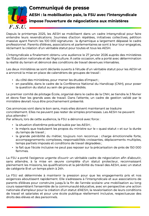 Cliquez sur l’image pour lire le communiqué de la FSU suite à cette audience.