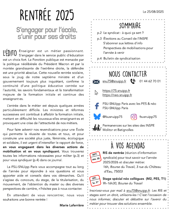 © FSU-SNUipp Paris | 11 rue de Tourtille 75020 | tél. : 01 44 62 70 01 |