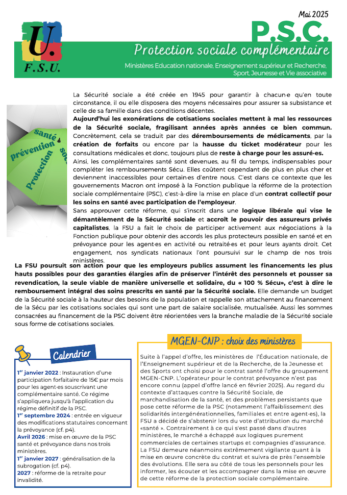 Protection sociale complémentaire - 4 pages de la FSU mai 2025